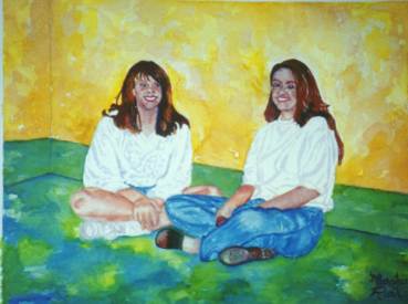 This is a painting of my two daughters sitting in the hallway of an airport. Their casual look and the angles of the walls and floor motivated me to paint this piece.